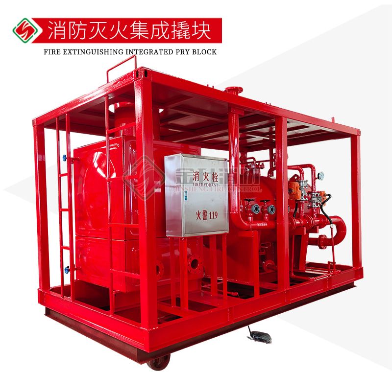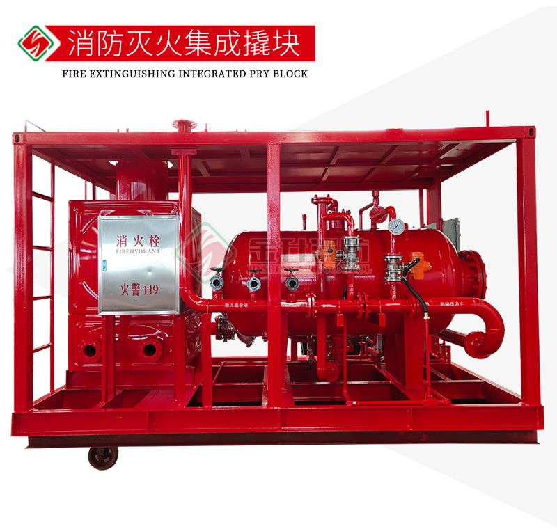 消防滅火集成撬塊主要有供水系統(tǒng)、比例混合系統(tǒng)、消防水箱、泡沫產(chǎn)生裝置、控制柜、閥門及管道組成。消防滅火集成撬運(yùn)輸方便,可使用在鉆井裝置區(qū)、鉆井營房、海上鉆井平臺(tái)等。滅火撬可以按照用戶需求定制。